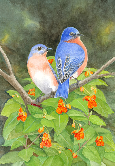 Original watercolor of Bluebirds